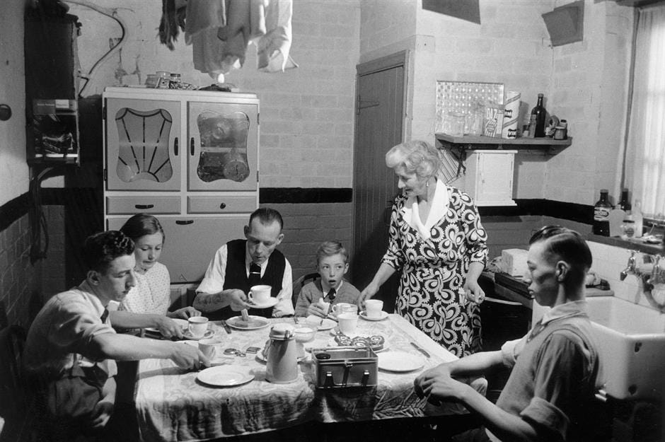 The trad impulse, stripped of all the cosplay, is really a cry of fatigue. A recognition that modern life is pushing families to breaking point. A longing to reclaim social rhythms that were eroding long before the post-war years, worn away by the slow mechanising of life. A deeper intuition of female domains that once anchored family and community life. A sphere of authority and presence that gradually thinned as daily living was pulled away from the home and into factories, offices and the tyranny of the clock. Over generations, we forgot not just who we are, but what family life was organised around.